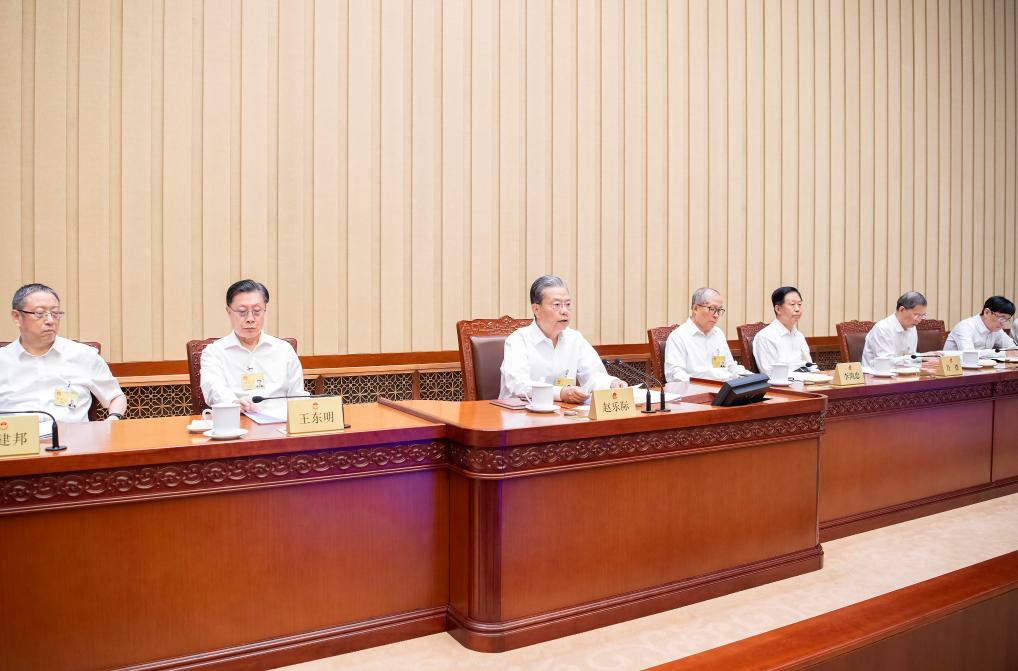 Zhao chaired a meeting of the Council of Chairpersons of the NPC Standing Committee before the closing meeting and presided over a lecture for lawmakers after the closing meeting.