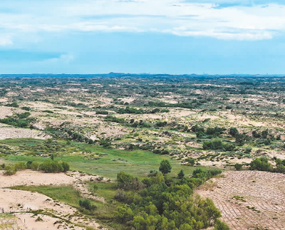 Hexigten Banner is home to over 8.66 million mu of the Hunshandake Sandy Land, making up 16.8 percent of the total area of the sandy land, of which the contiguous area of extremely severe desertified land is mainly distributed in the Cuocaoshan zone.