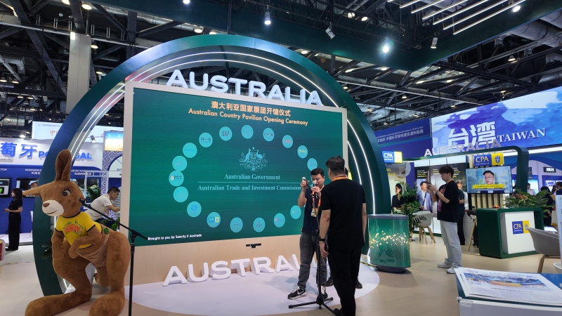 Staff members prepare for the opening ceremony of the Australia Country Pavilion at the China National Convention Center during the 2024 China International Fair for Trade in Services (CIFTIS). (People's Daily Online/Yang Qian)