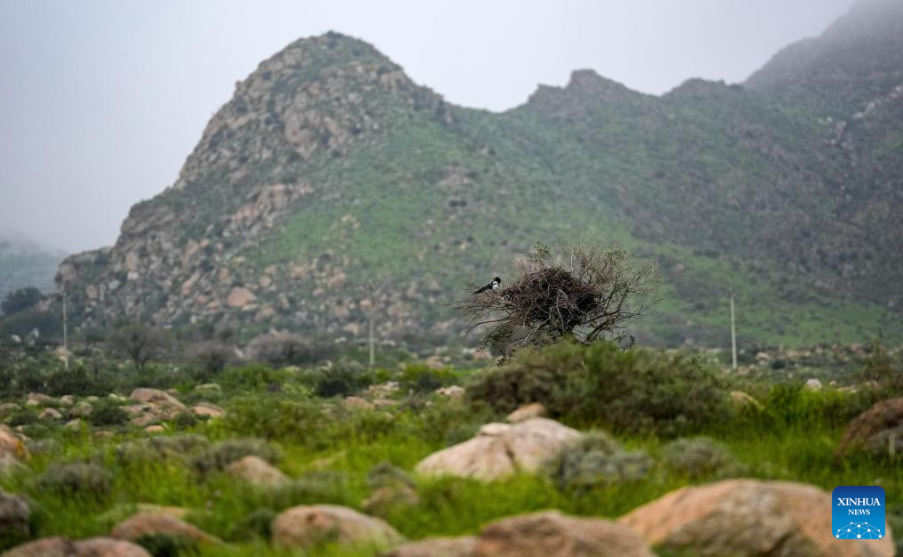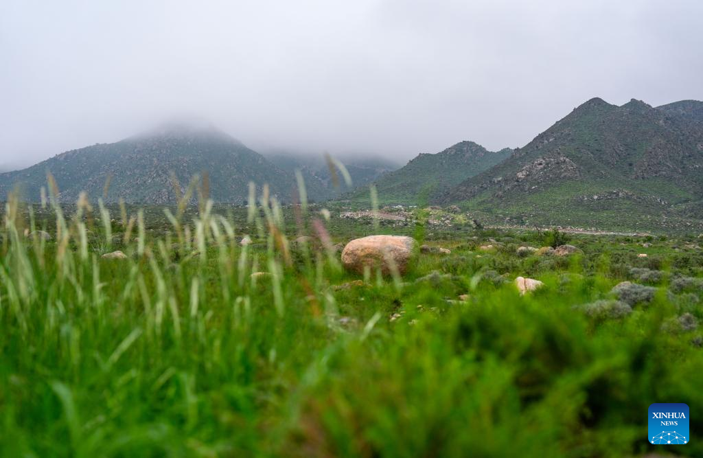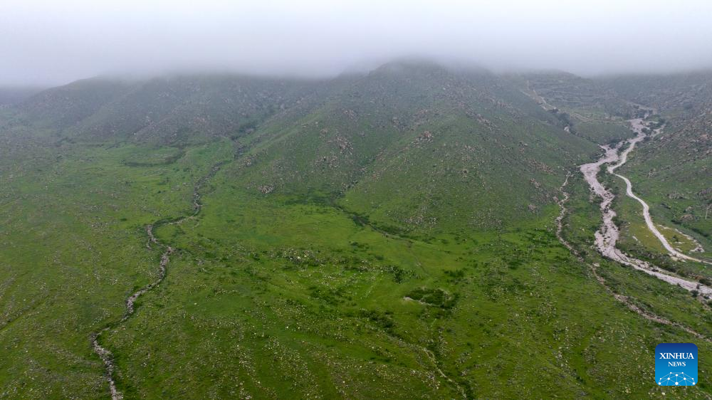 An aerial drone photo taken on Sept. 14, 2024 shows the scenery of Helan Mountain in Yinchuan, northwest China's Ningxia Hui Autonomous Region. (Xinhua/Yang Zhisen)