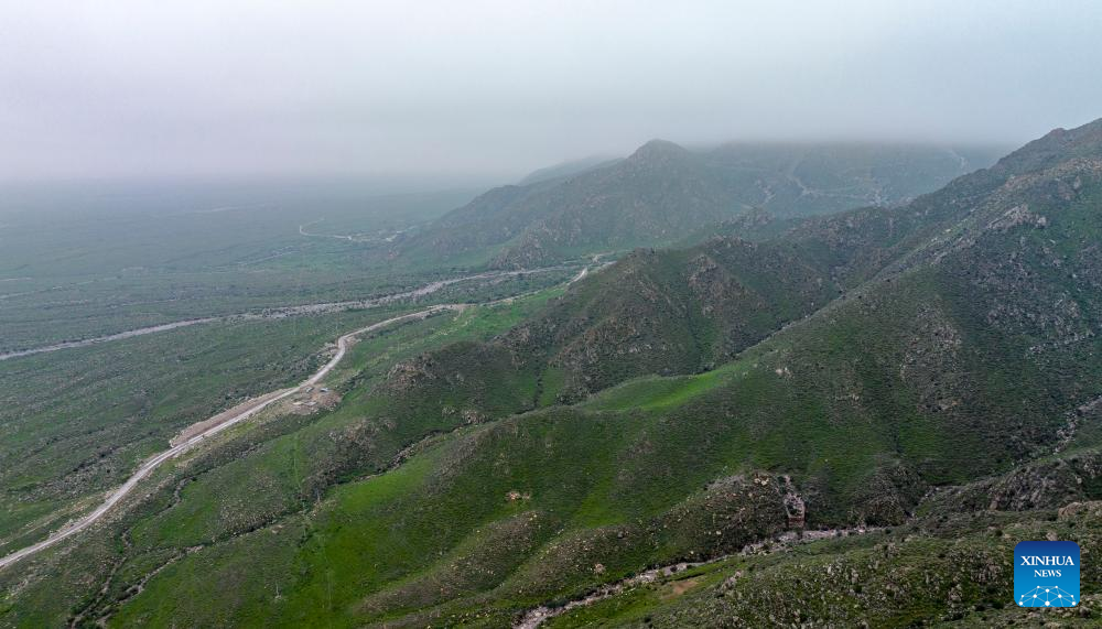 A drone photo taken on Sept. 14, 2024 shows the scenery of Helan Mountain in Yinchuan, northwest China's Ningxia Hui Autonomous Region. (Xinhua/Yang Zhisen)