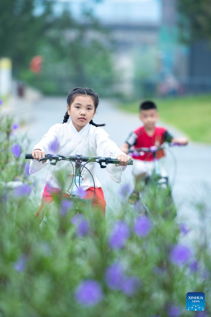 Children ride in Loudi City, central China's Hunan Province, Sept. 17, 2024. Chinese enjoyed a three-day holiday for the Mid-Autumn Festival, which fell on Sept. 17 this year. (Photo by Wu Yonghua/Xinhua)