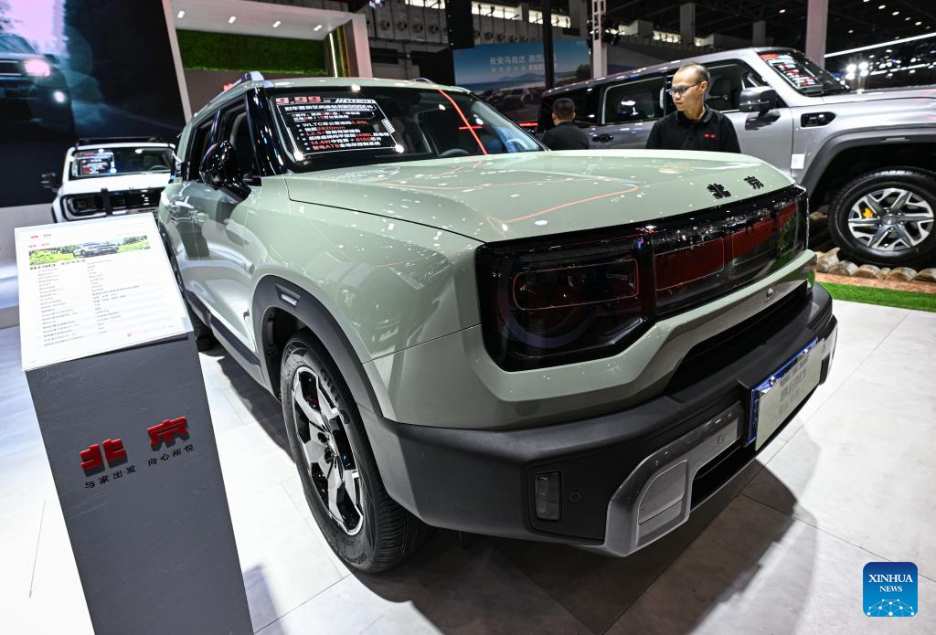 A BAIC BJ30 car is seen at the 2024 Hainan Autumn Auto Show in Hainan International Conference and Exhibition Center in Haikou, capital of south China's Hainan Province, Sept. 16, 2024. The show was held from Sept. 13 to 16, with nearly one hundred car manufacturers showcasing their products on a display area of more than 50,000 square meters. About 70 percent of the exhibited vehicles were new energy vehicles. (Xinhua/Pu Xiaoxu)