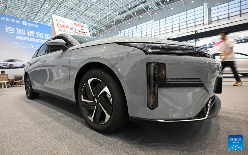 A Geely Galaxy L6 car is seen at the 2024 Hainan Autumn Auto Show in Hainan International Conference and Exhibition Center in Haikou, capital of south China's Hainan Province, Sept. 16, 2024. The show was held from Sept. 13 to 16, with nearly one hundred car manufacturers showcasing their products on a display area of more than 50,000 square meters. About 70 percent of the exhibited vehicles were new energy vehicles. (Xinhua/Pu Xiaoxu)