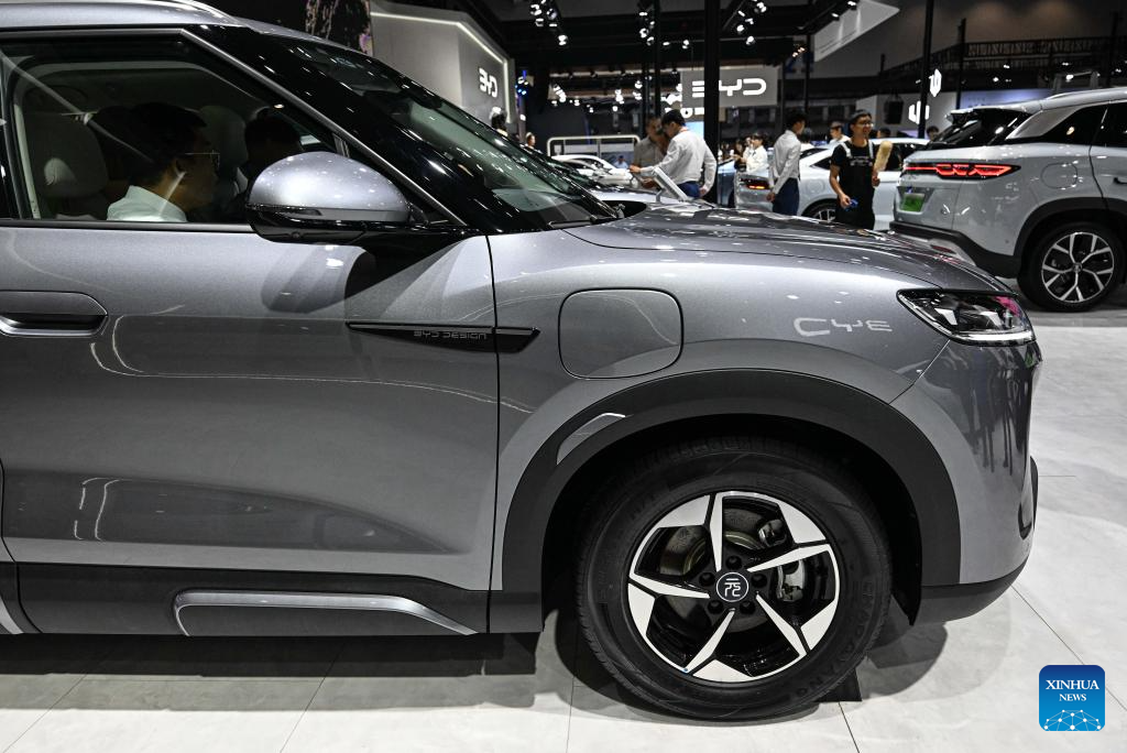 A BYD Yuan car is seen at the 2024 Hainan Autumn Auto Show in Hainan International Conference and Exhibition Center in Haikou, capital of south China's Hainan Province, Sept. 16, 2024. The show was held from Sept. 13 to 16, with nearly one hundred car manufacturers showcasing their products on a display area of more than 50,000 square meters. About 70 percent of the exhibited vehicles were new energy vehicles. (Xinhua/Pu Xiaoxu)