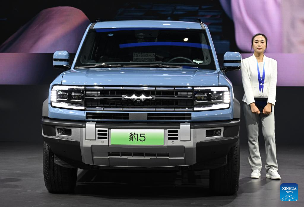 A Fangchengbao Bao 5 car is seen at the 2024 Hainan Autumn Auto Show in Hainan International Conference and Exhibition Center in Haikou, capital of south China's Hainan Province, Sept. 16, 2024. The show was held from Sept. 13 to 16, with nearly one hundred car manufacturers showcasing their products on a display area of more than 50,000 square meters. About 70 percent of the exhibited vehicles were new energy vehicles. (Xinhua/Pu Xiaoxu)