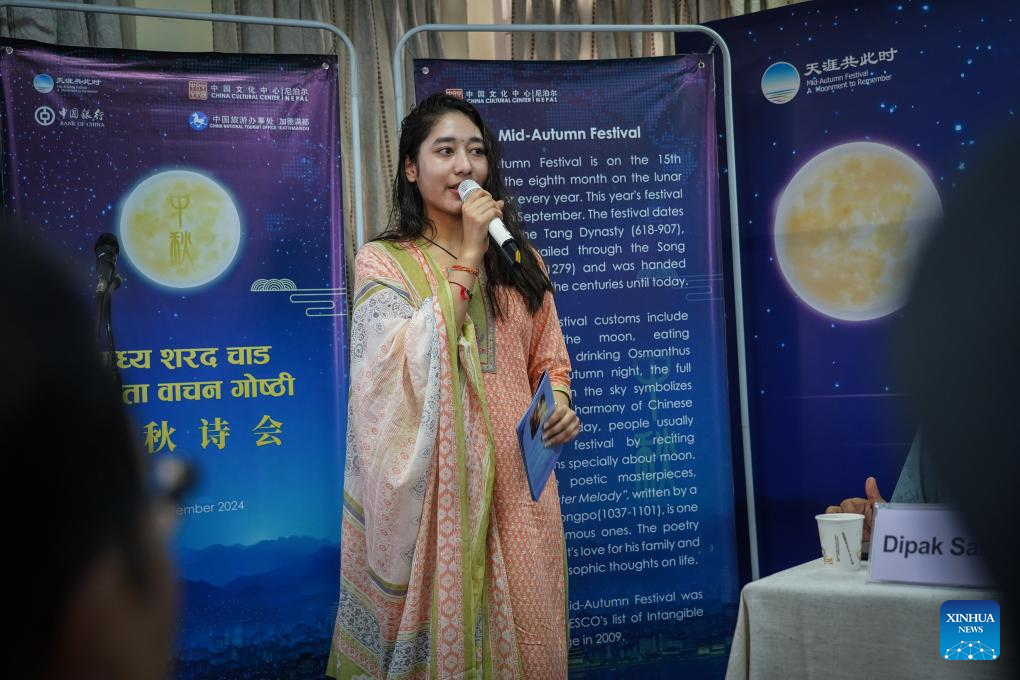 KATHMANDU, Sept. 17 (Xinhua) -- A poetry reading was held in the Nepali captial on Tuesday on the occasion of the traditional Chinese Mid-Autumn Festival.