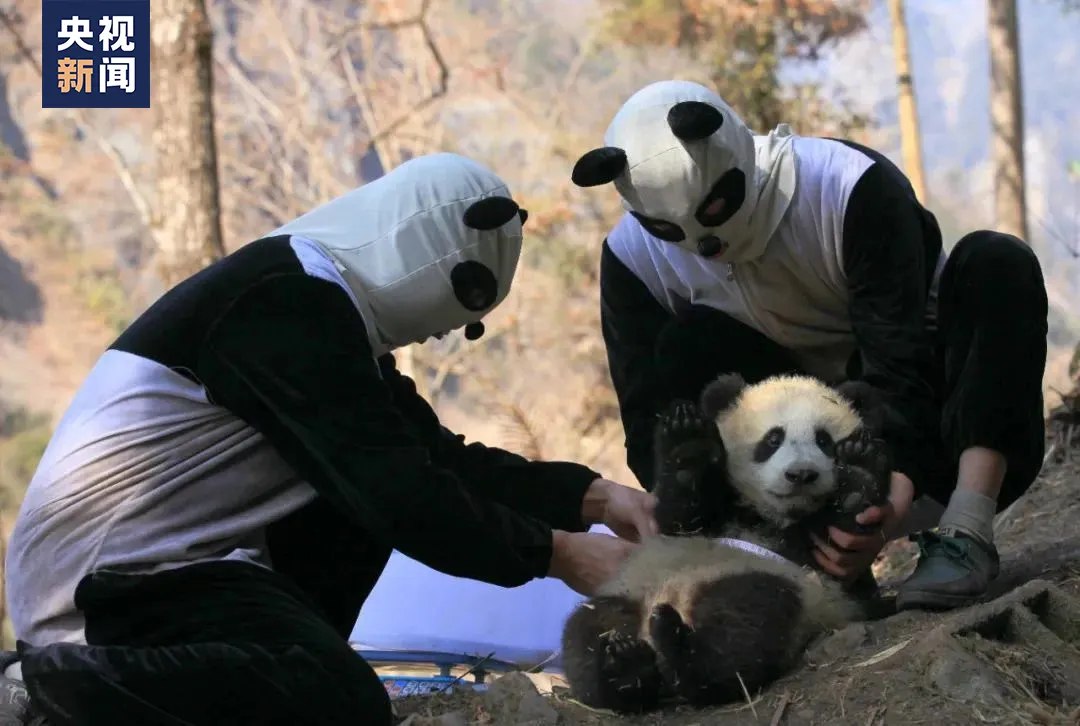 During the rewilding process, giant panda keepers need to disguise themselves as giant pandas to prevent the animals from becoming dependent on humans, according to Mou Shijie, a giant panda keeper at the China Conservation and Research Center for the Giant Panda.