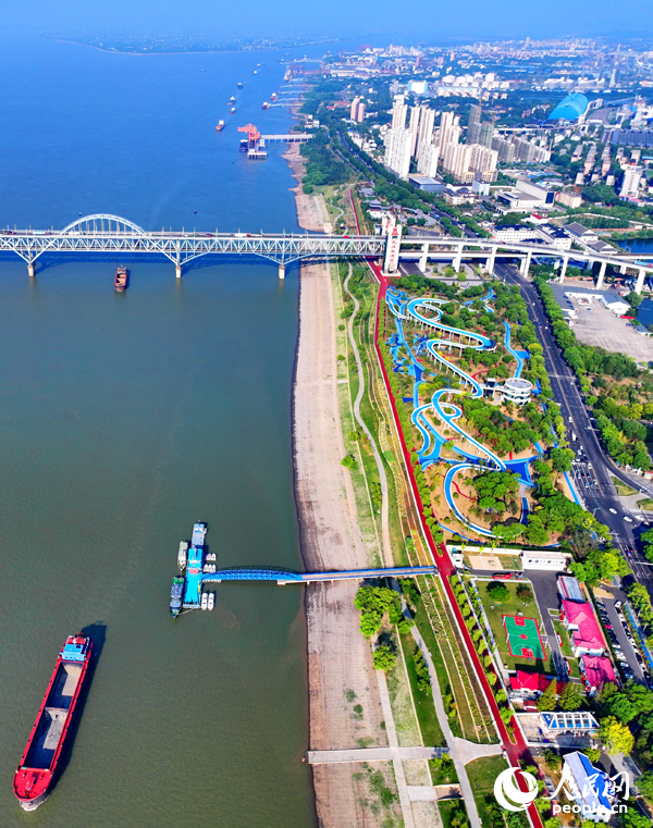 The Jiujiang urban section of the Yangtze River National Culture Park connects renowned landmarks, such as the Jiujiang Yangtze River Bridge, Pipa Pavilion, Suojiang Tower and Xunyang Tower, creating a harmonious landscape along the Yangtze River.