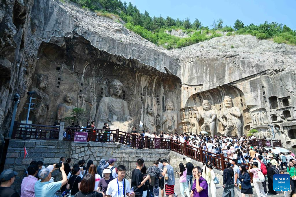 People visit the Longmen Grottoes scenic spot in Luoyang City, central China's Henan Province, Sept. 16, 2024. (Photo by Li Weichao/Xinhua)