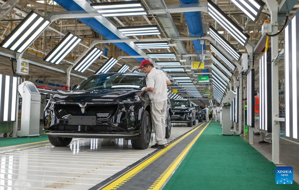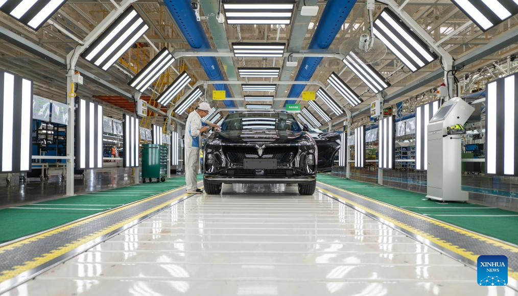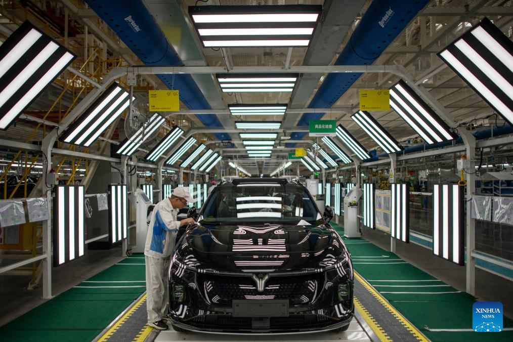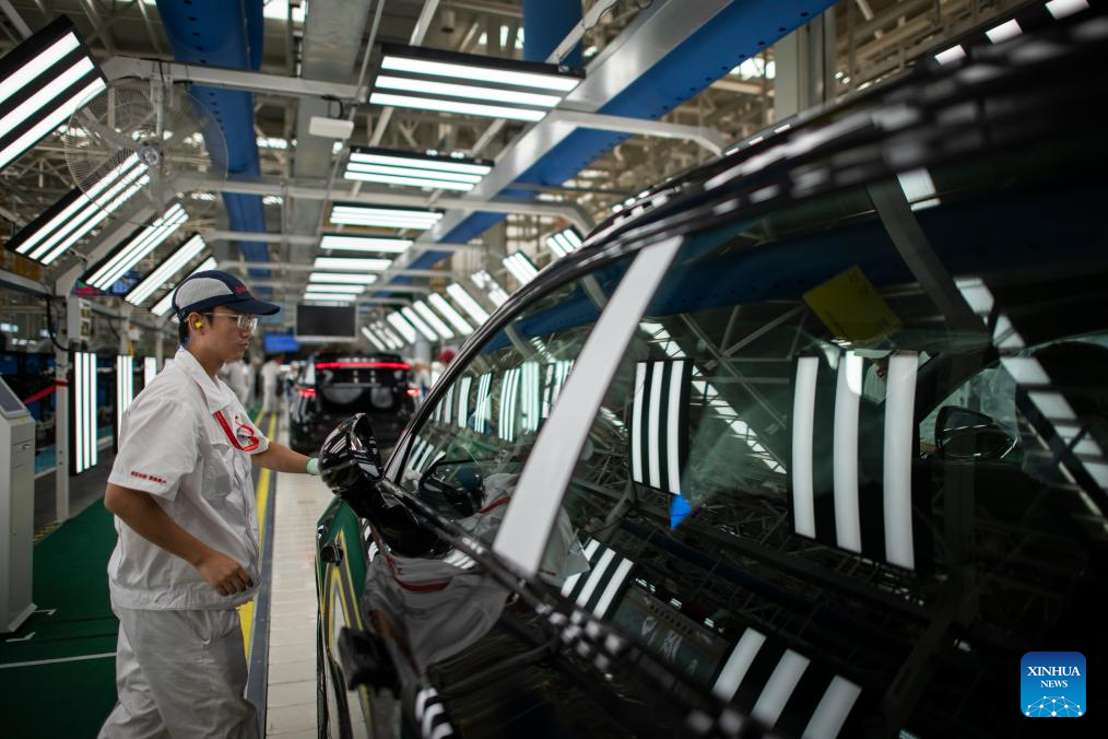 A worker checks the quality of a new vehicle at an assembly line of Dongfeng Motor Corporation in Wuhan, central China's Hubei Province, Sept. 6, 2024. (Xinhua/Hu Jingwen)