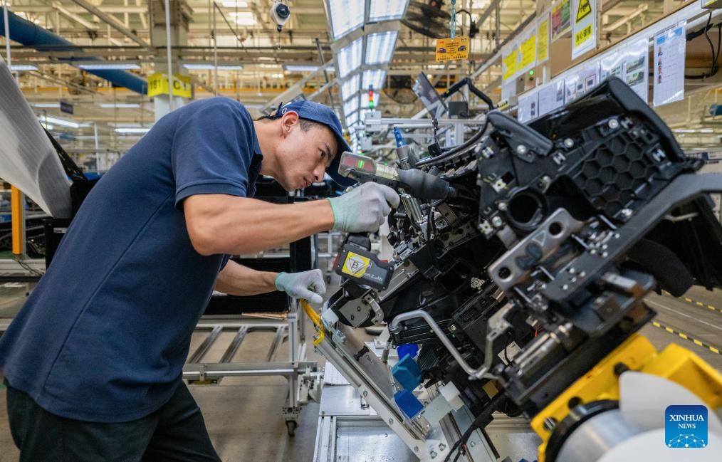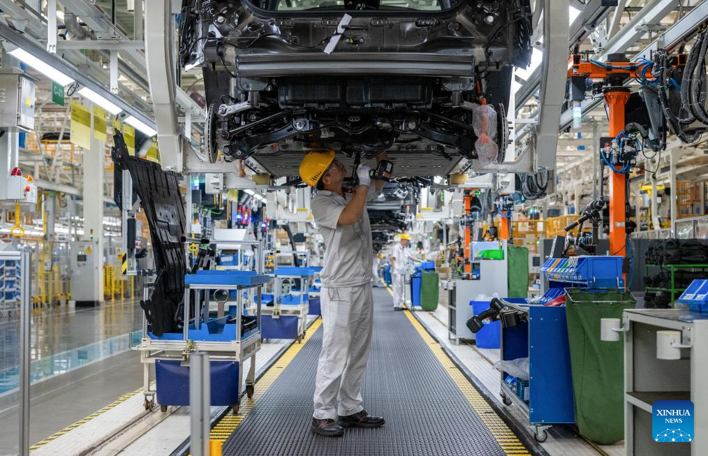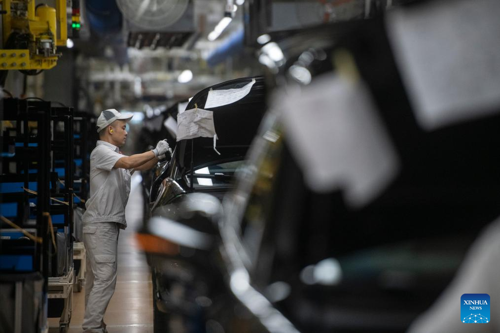 A worker works at an assembly line of Dongfeng Motor Corporation in Wuhan, central China's Hubei Province, Sept. 6, 2024. (Xinhua/Hu Jingwen)