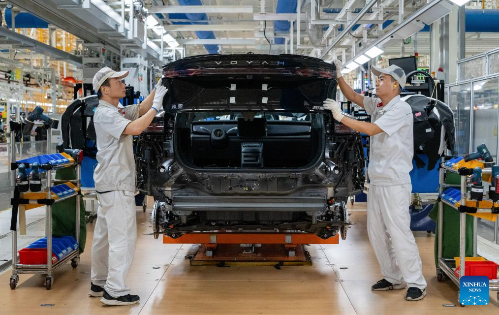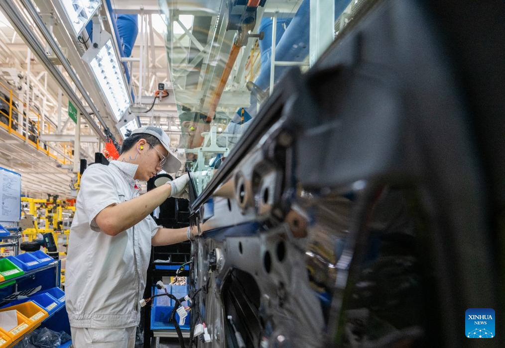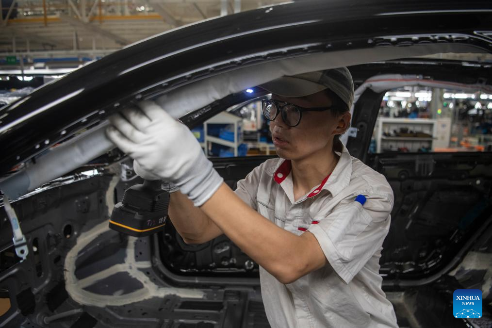 Workers check the function of doors at an assembly line of Dongfeng Motor Corporation in Wuhan, central China's Hubei Province, Sept. 6, 2024. (Xinhua/Wu Zhizun)