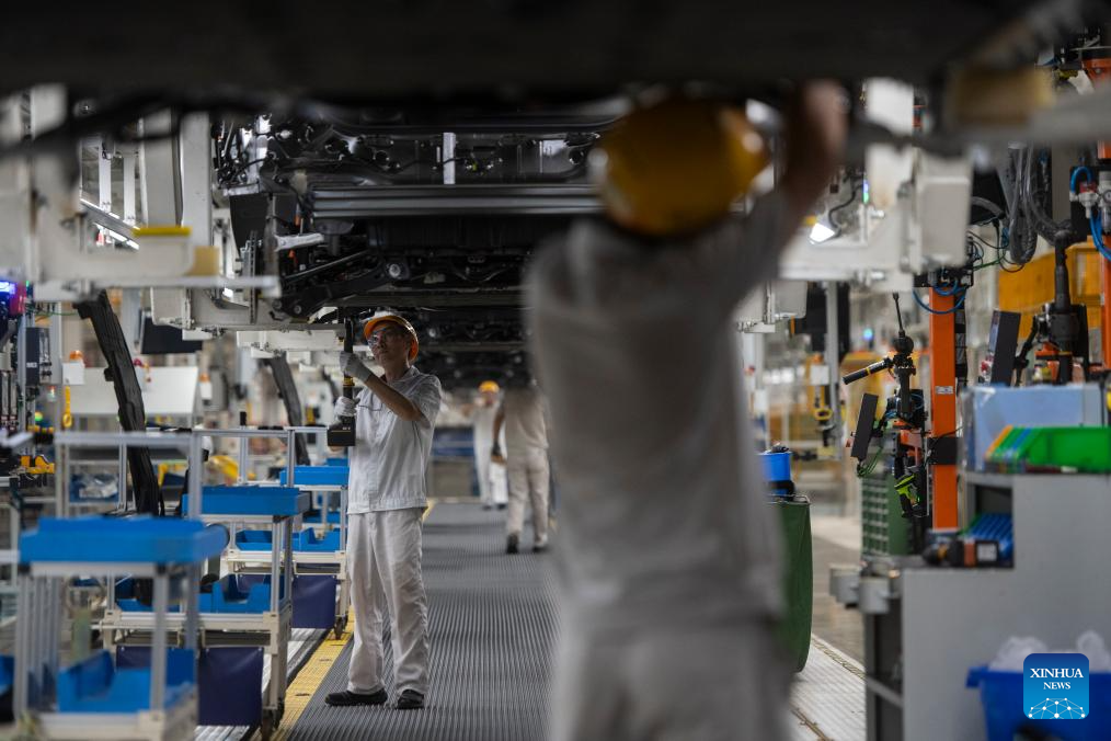 Workers work at an assembly line of Dongfeng Motor Corporation in Wuhan, central China's Hubei Province, Sept. 6, 2024. (Xinhua/Wu Zhizun)