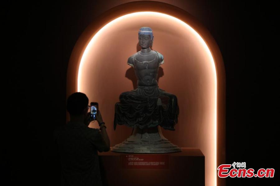 Artifacts from the Dunhuang Caves are displayed during a special exhibition at China Art Museum in Shanghai, Sept. 18, 2024. (Photo: China News Service/Tang Yanjun)