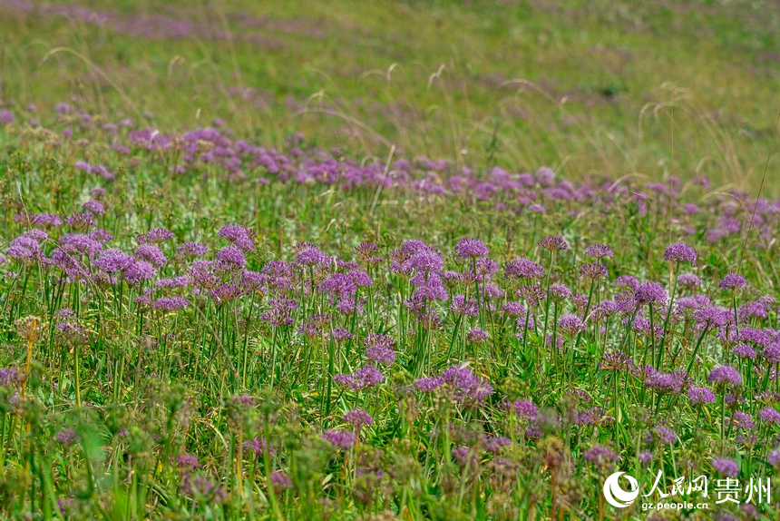 Photo shows blooming wild leek flowers at Jiucaiping scenic spot in Hezhang county, Bijie city, southwest China's Guizhou Province, Sept. 16, 2024. (People's Daily Online/Tu Min)