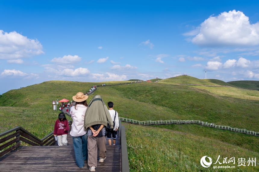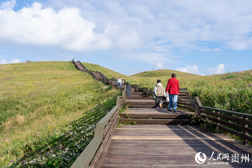 Tourists visit Jiucaiping scenic spot in Hezhang county, Bijie city, southwest China's Guizhou Province, Sept. 16, 2024. (People's Daily Online/Tu Min)