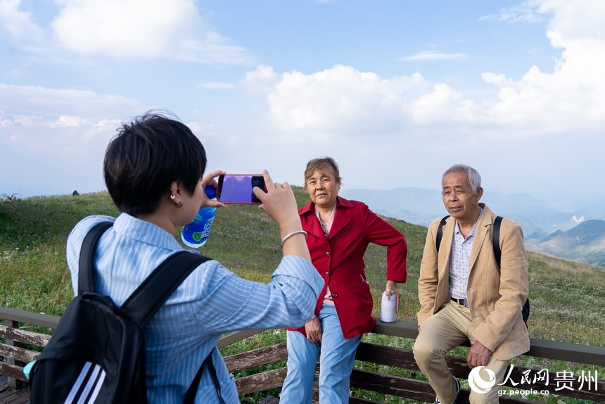 Tourists take photos at Jiucaiping scenic spot in Hezhang county, Bijie city, southwest China's Guizhou Province, Sept. 16, 2024. (People's Daily Online/Tu Min)