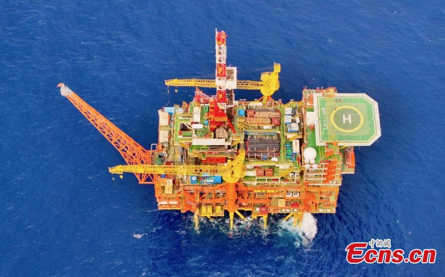Haiji-2, Asia's first deepwater jacket for the Liuhua 11-1/4-1 oilfield secondary development project is put into operation in the South China Sea, Sept. 19, 2024. (Photo: China News Service/Chen Wen)