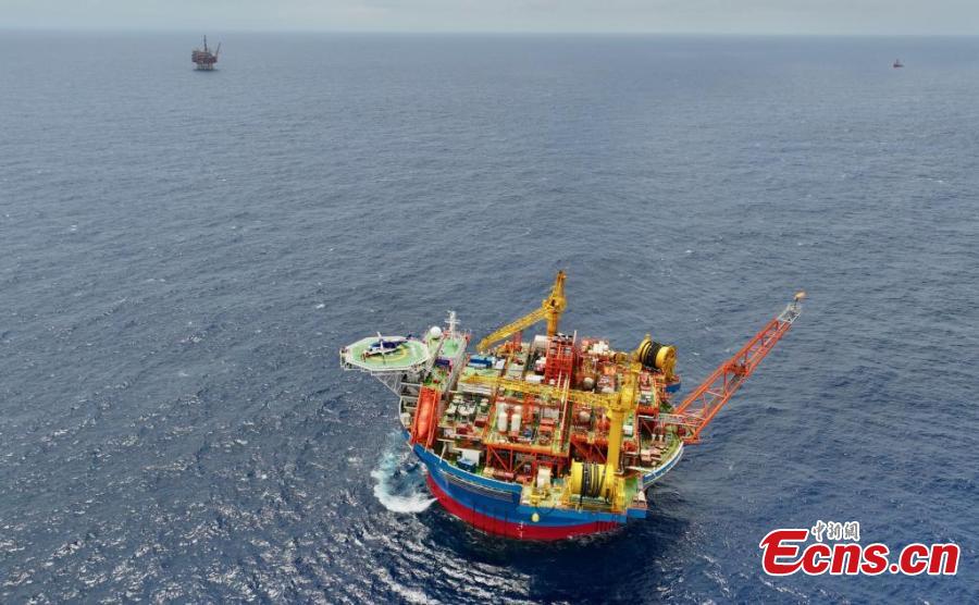 China's self-developed cylindrical floating, production, storage, and offloading (FPSO) facility Haikui 1, a project designed for the Liuhua 11-1/4-1 oilfield secondary development, is put into operation in the South China Sea, Sept. 19, 2024. (Photo: China News Service/Chen Wen)