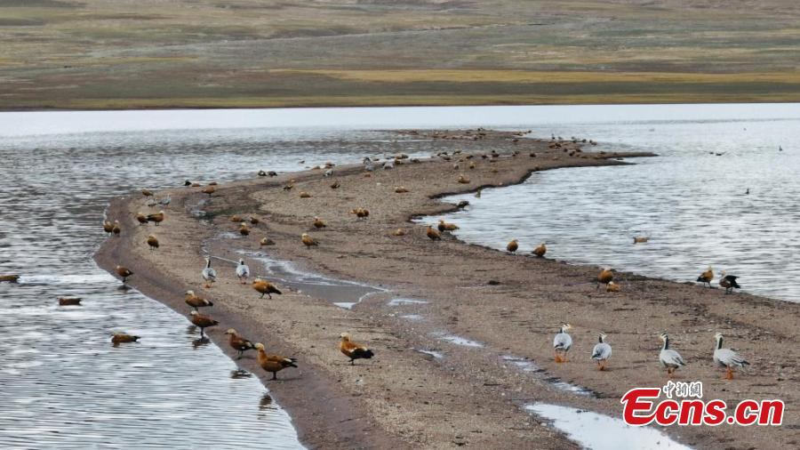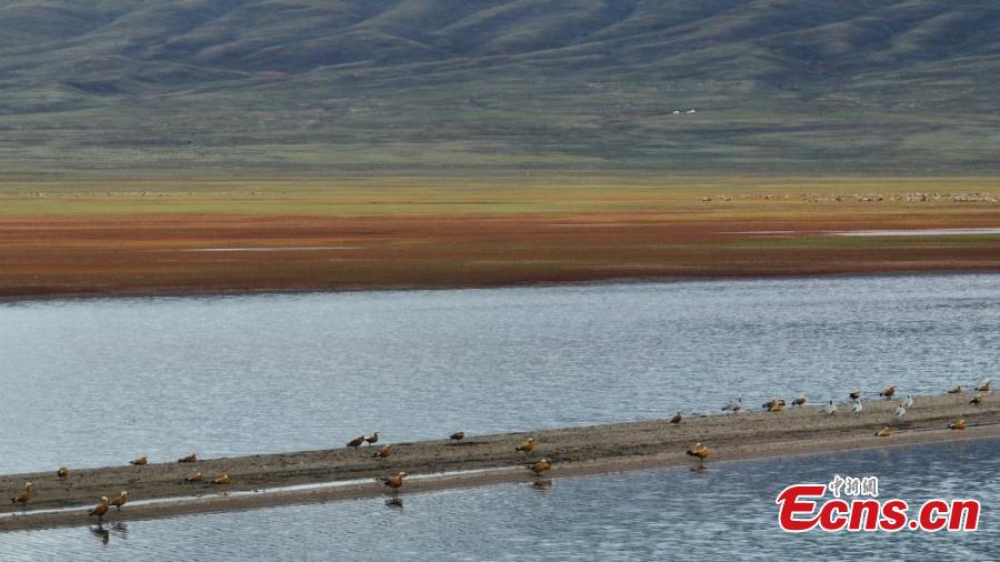The Arak Lake is located in the northeast of the Qinghai-Tibet Plateau, the southern foot of Burkhambuda Mountain at the eastern end of the East Kunlun Mountains. The black-necked cranes, the first-class protected animals in China, are migrating to their winter habitat in Qinghai.