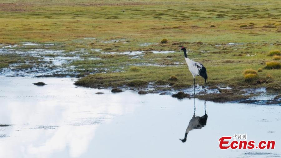 Black-necked cranes wander at the Arak Lake National Wetland Park, Dulan County, Haixi Autonomous Prefecture, northwest China's Qinghai Province, Sept. 18, 2024. (Photo: China News Service/Xian Gong)
