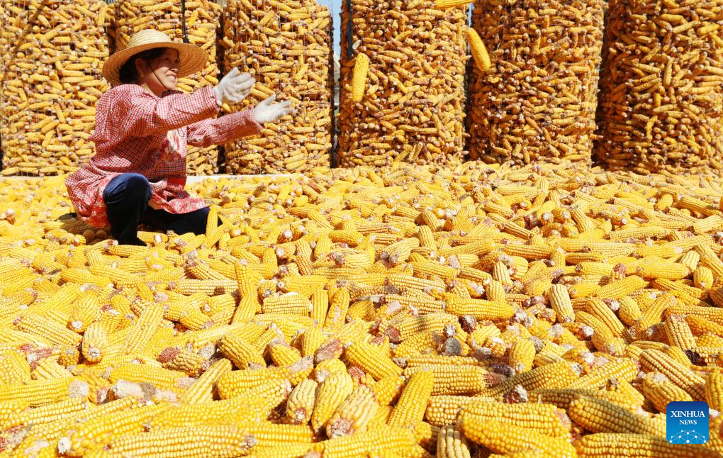 A farmer sorts out corns at Tancheng County in Linyi City, east China's Shandong Province, Sept. 22, 2024. (Photo by Zhang Chunlei/Xinhua)