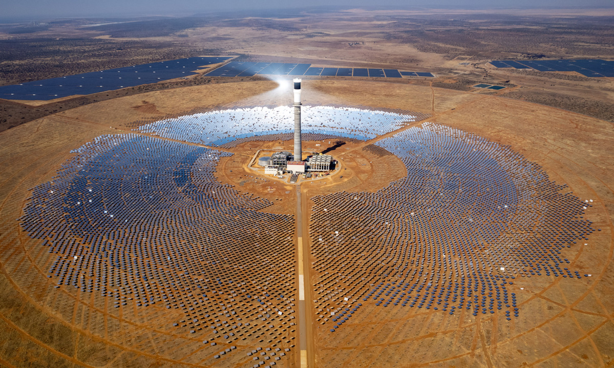 An aerial photo of the 100 MW tower for the solar power plant project in Cape Town, South Africa, Aug 20, 2024. (Photo/Xinhua)