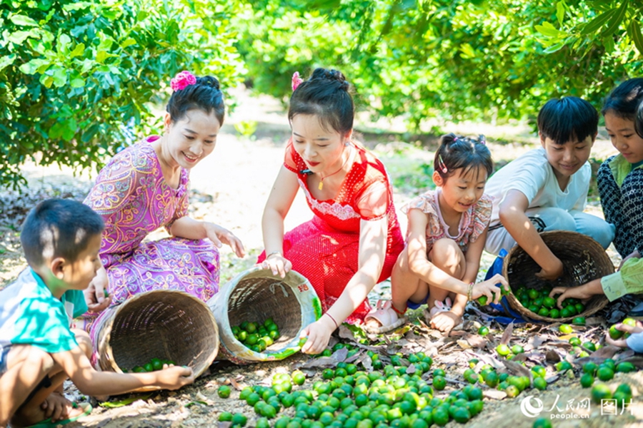 People harvest nuts in Yongde county, Lincang city, southwest China's Yunnan Province, Sept. 7, 2024. (People's Daily Online/Zhuang Zhibin)
