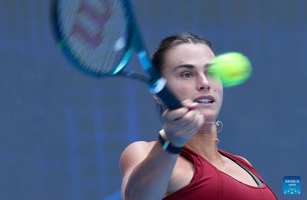 Aryna Sabalenka of Belarus attends a training session at 2024 China Open tennis tournament in Beijing, capital of China, Sept. 23, 2024. (Xinhua/Bai Xuefei)