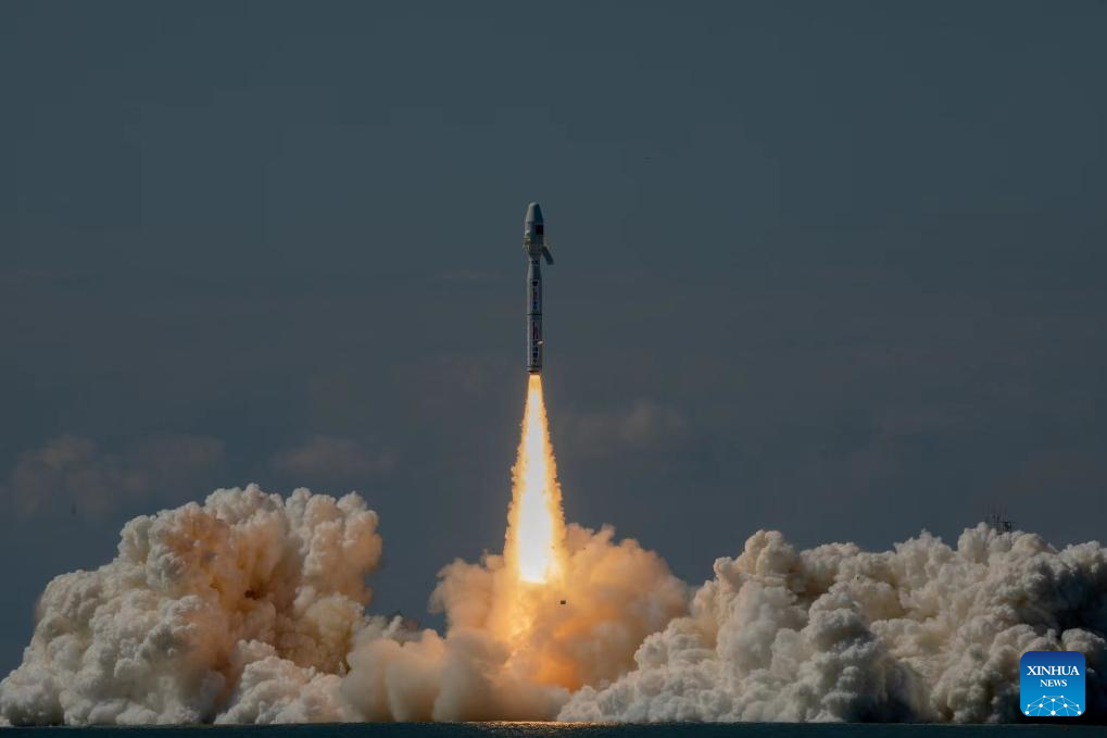 HAIYANG, Shandong, Sept. 24 (Xinhua) -- China launched a Smart Dragon-3 carrier rocket from the waters near the city of Haiyang in east China's Shandong Province on Tuesday, placing eight satellites into planned orbit.