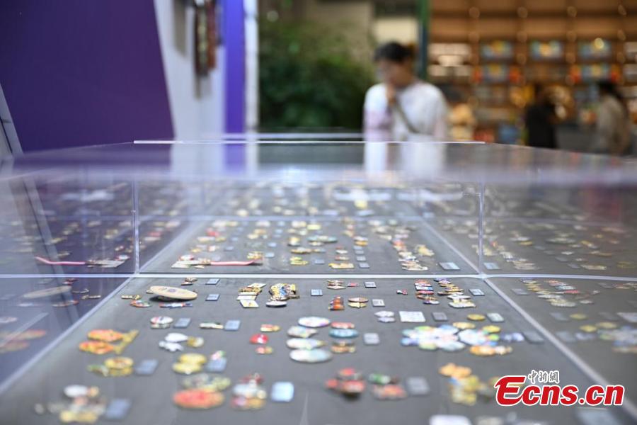 Hangzhou Asian Games featured pins are displayed during a special exhibition to mark the one-year anniversary of the Hangzhou Asian Games in Hangzhou, east China's Zhejiang Province, Sept. 23, 2024. (Photo: China News Service/Wang Gang)