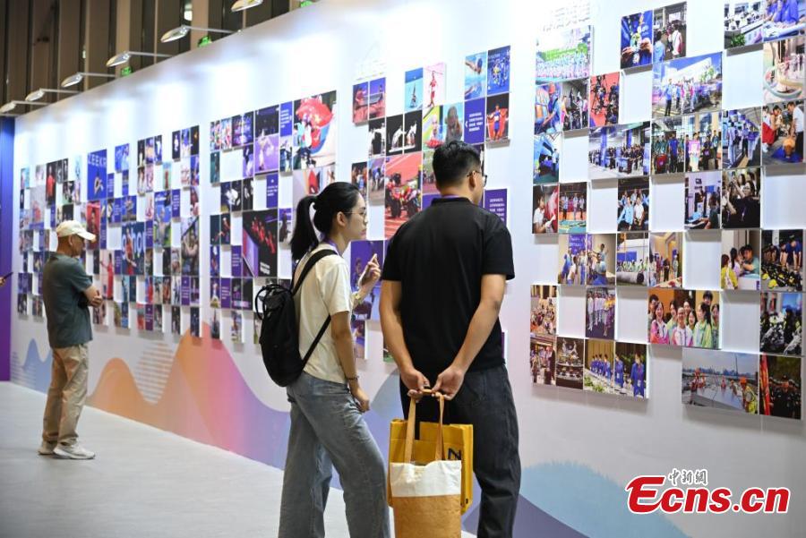 Visitors view a gallery wall during a special exhibition to mark the one-year anniversary of the Hangzhou Asian Games in Hangzhou, east China's Zhejiang Province, Sept. 23, 2024. (Photo: China News Service/Wang Gang)