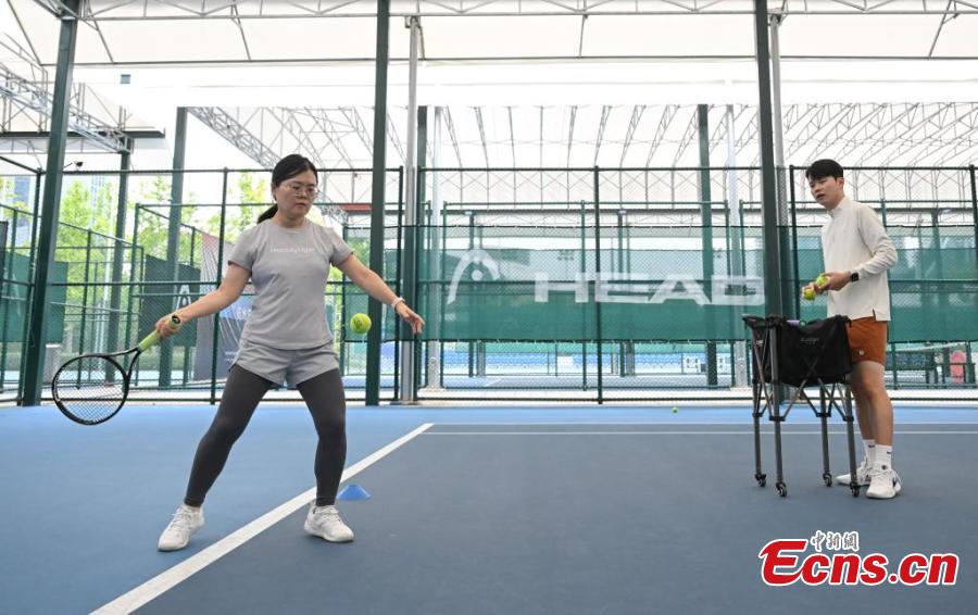 People play tennis at the Hangzhou Olympic Sports Center to mark the one-year anniversary of the Hangzhou Asian Games, in east China's Zhejiang Province, Sept. 23, 2024. (Photo: China News Service/Wang Gang)