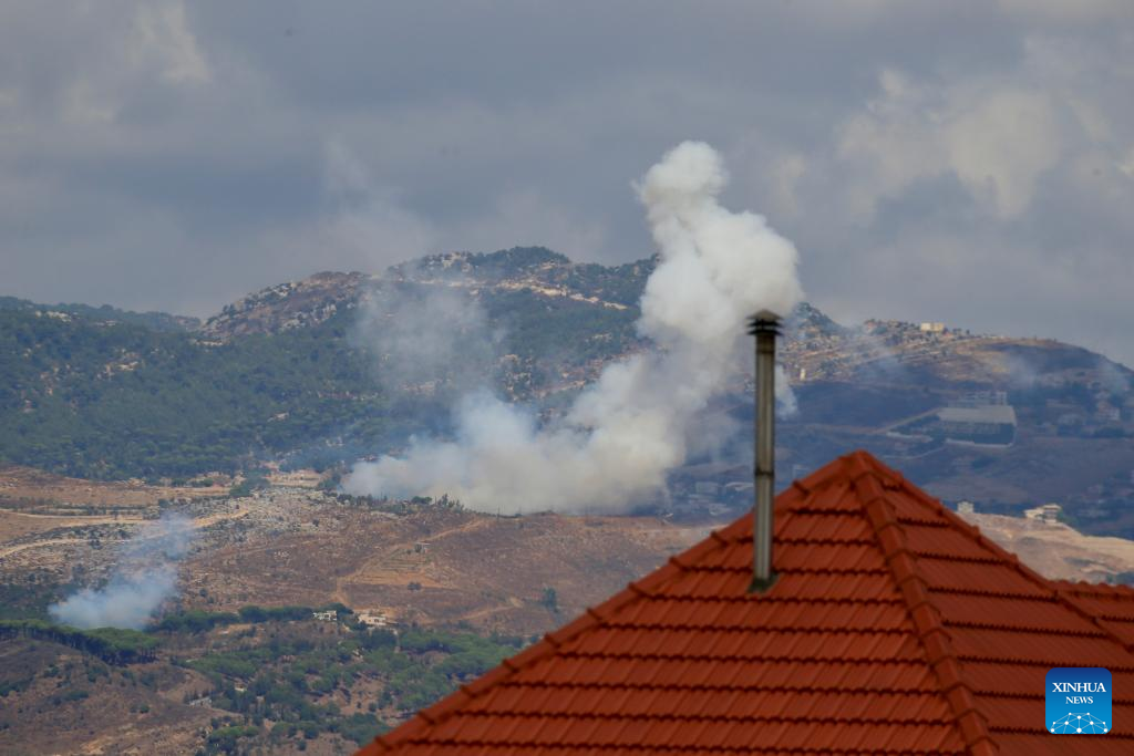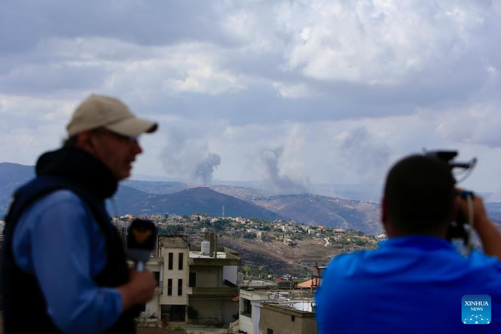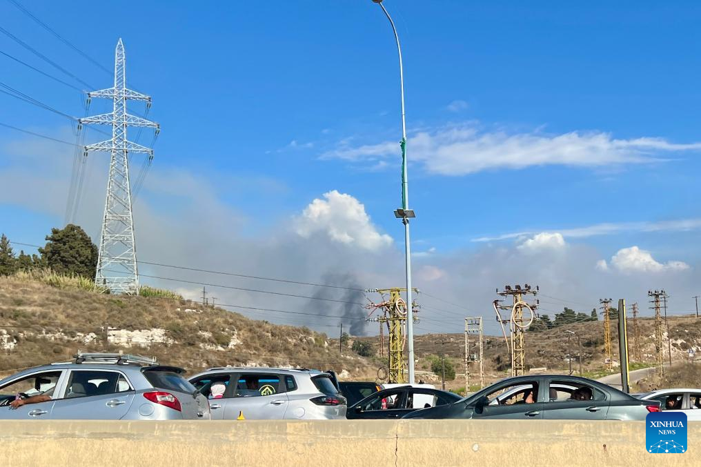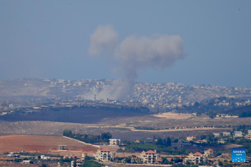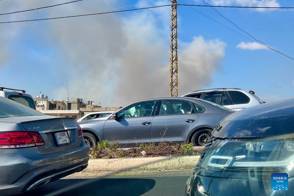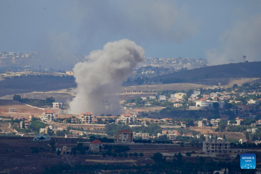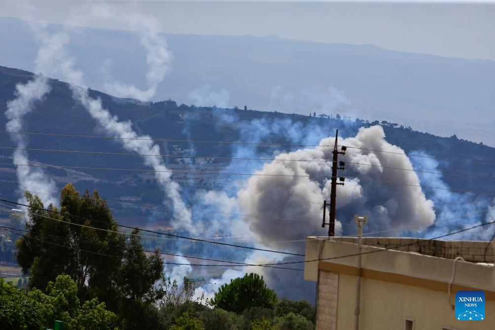 This photo shows smoke caused by Israeli raids in Marjeyoun, Lebanon, on Sept. 23, 2024. (Photo by Ali Hashisho/Xinhua)