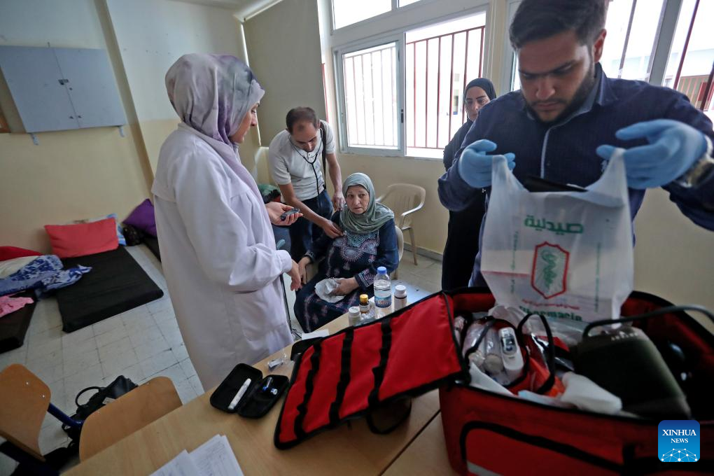 A medical team provides health examination for a displaced woman from southern Lebanon in Beirut, Lebanon, on Sept. 24, 2024. (Xinhua/Bilal Jawich)