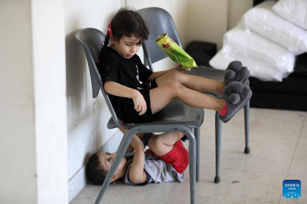 Displaced children from southern Lebanon are pictured in Beirut, Lebanon, on Sept. 24, 2024. (Xinhua/Bilal Jawich)