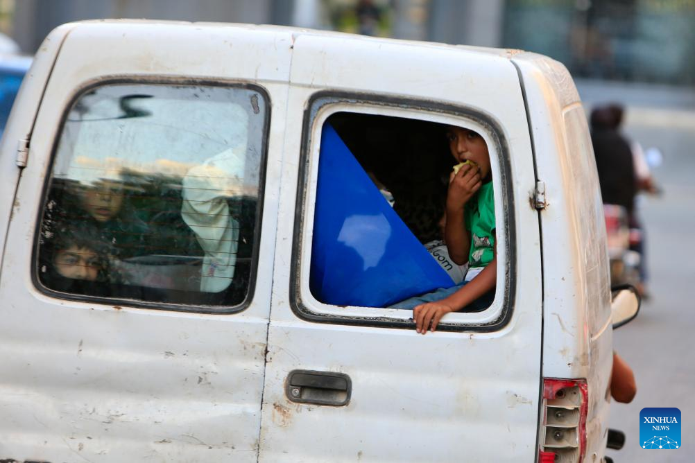 Displaced Lebanese flee the Israeli bombing of southern Lebanon in Sidon, Lebanon, on Sept. 23, 2024. (Photo by Ali Hashisho/Xinhua)