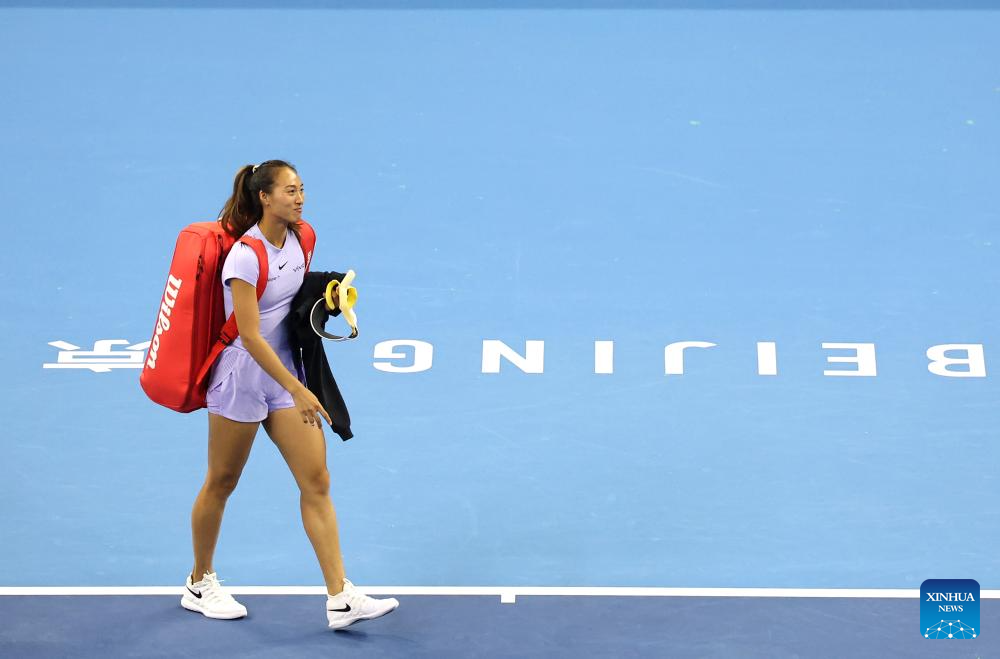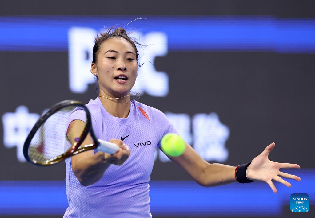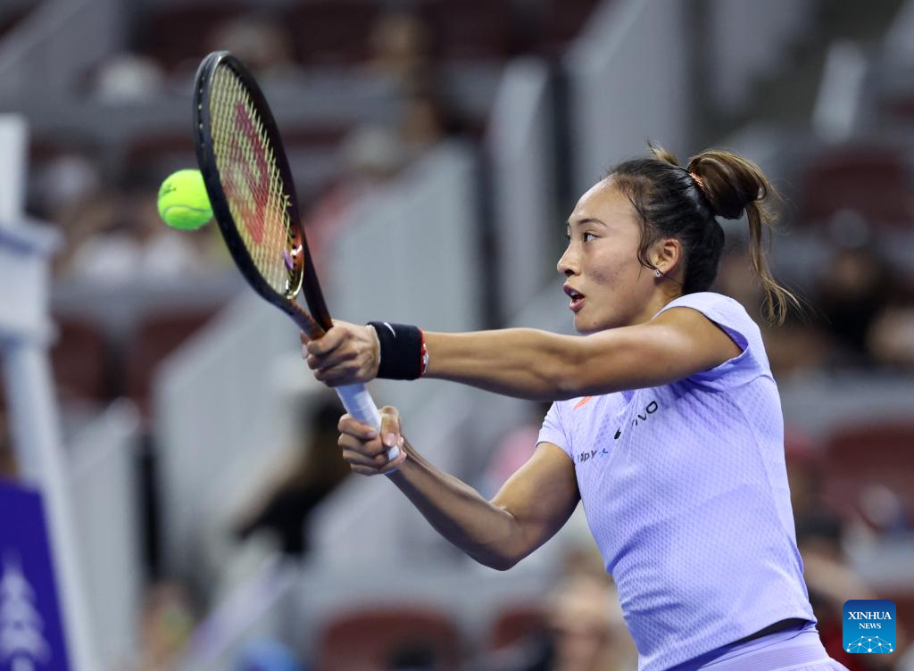 Zheng Qinwen of China attends a training session at the 2024 China Open tennis tournament in Beijing, capital of China, Sept. 24, 2024. (Xinhua/Zhang Chen)