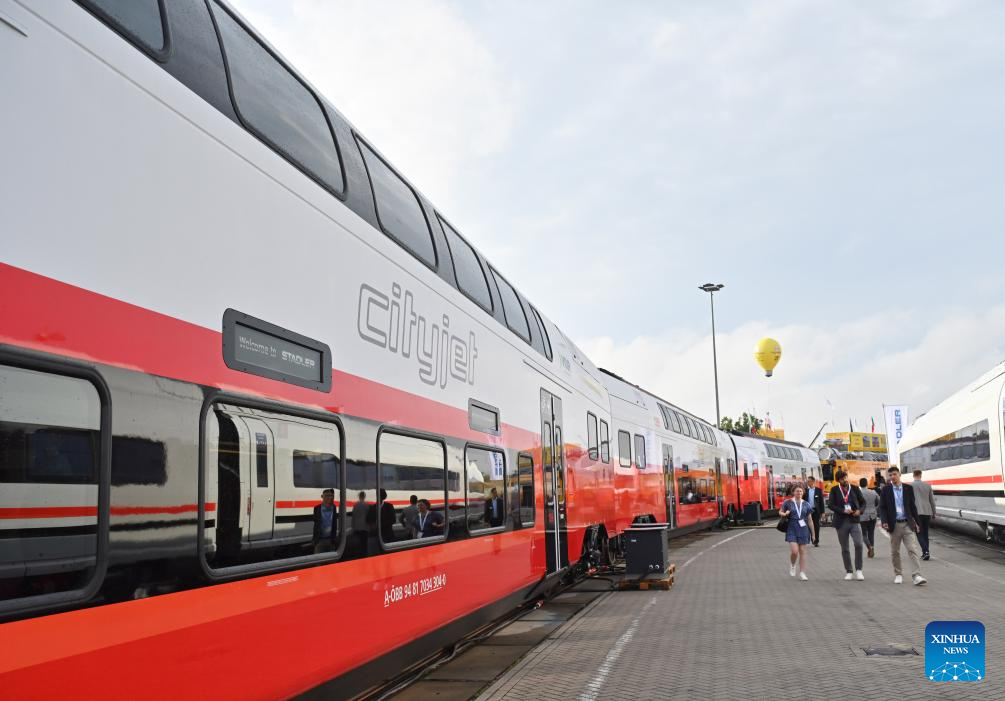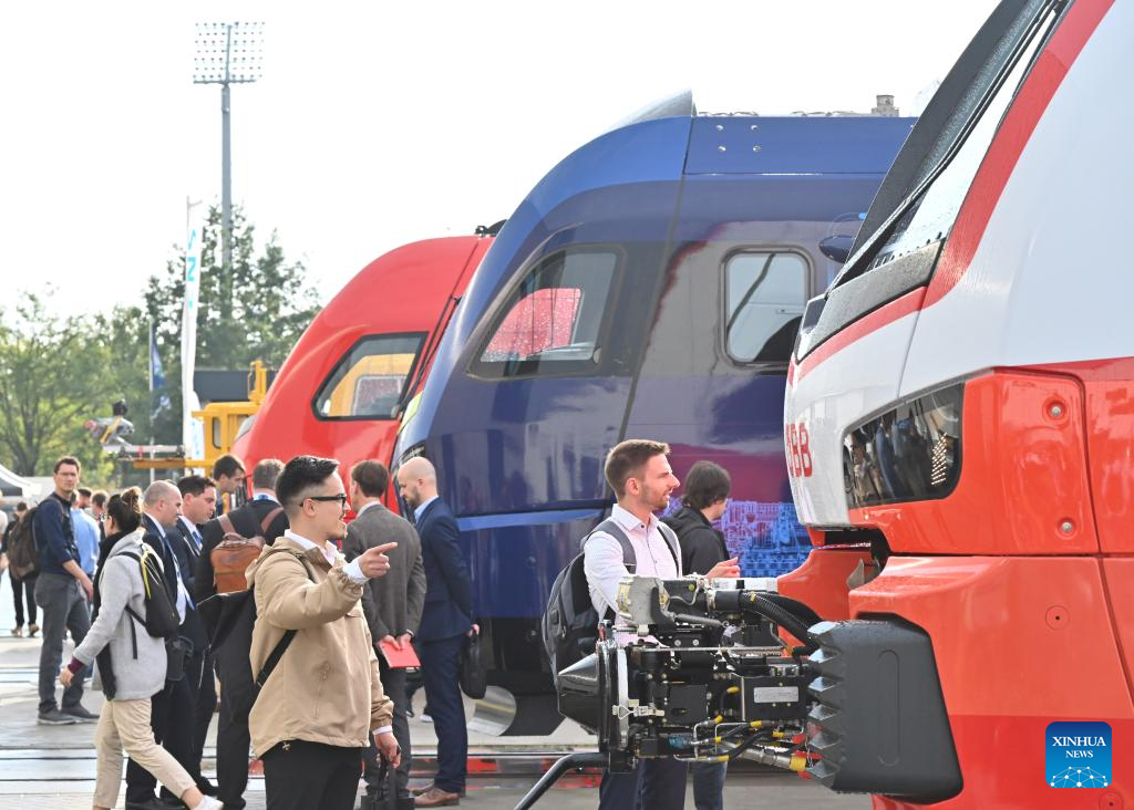 People visit the 2024 International Trade Fair for Transport Technology (InnoTrans 2024) in Berlin, Germany, Sept. 24, 2024. (Xinhua/Ren Pengfei)