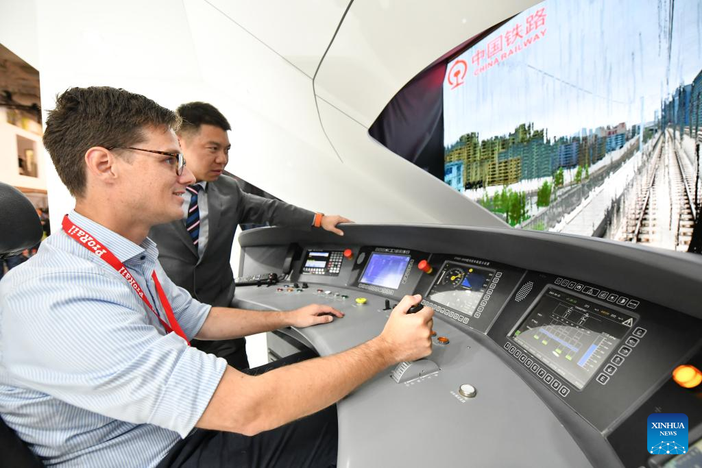 Meanwhile, the China State Railway Group is showcasing its high-speed trains capable of reaching speeds of 350 km per hour, along with equipment used for China-Europe freight trains.