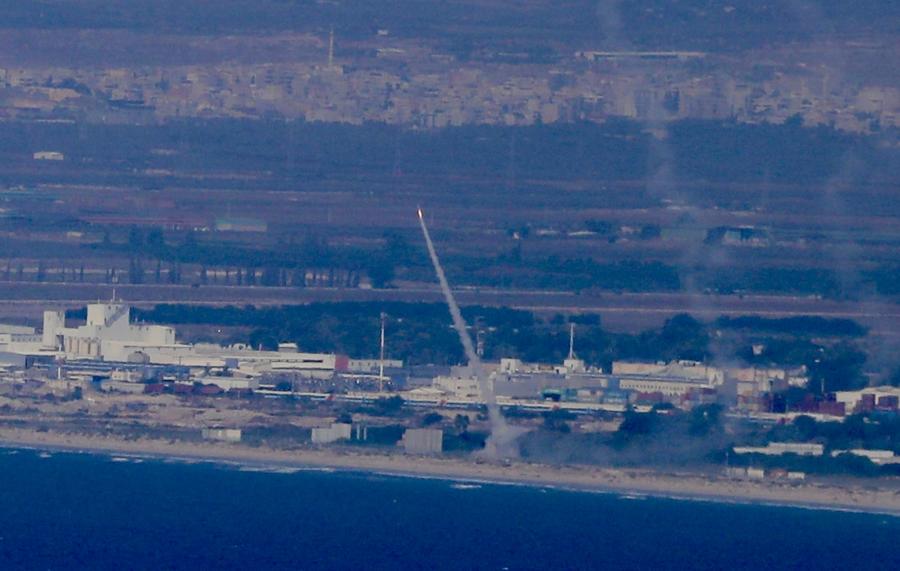 An Israeli anti-missile system launches missiles to intercept rockets fired from Lebanon, as seen from Haifa, in northern Israel, on Sept. 24, 2024. (Photo by Jamal Awad/Xinhua)