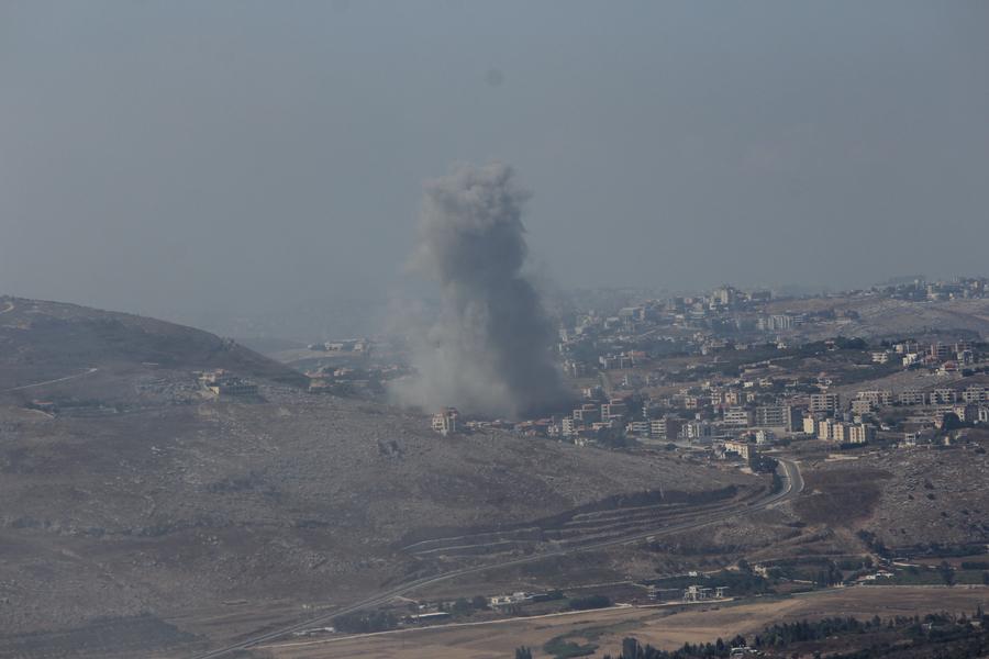 This photo shows smoke caused by Israeli raids in Marjeyoun, Lebanon, on Sept. 23, 2024. (Photo by Ali Hashisho/Xinhua)