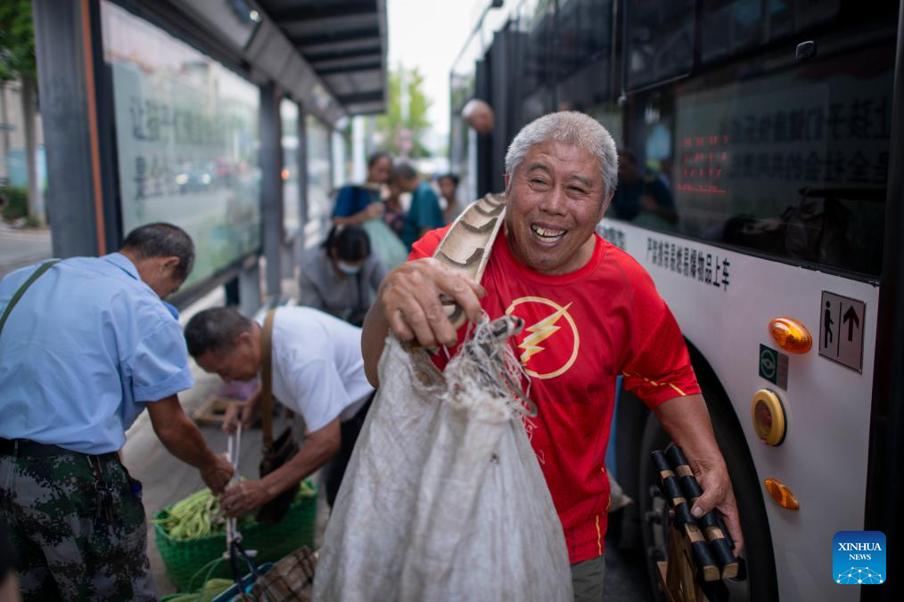 WUHAN, Sept. 25 (Xinhua) -- Before sunrise, more than a dozen farmers gather at He Station in a suburb of Wuhan, in central China's Hubei Province, waiting for a special bus, together with baskets and bags filled with fresh seasonal fruit and vegetables.