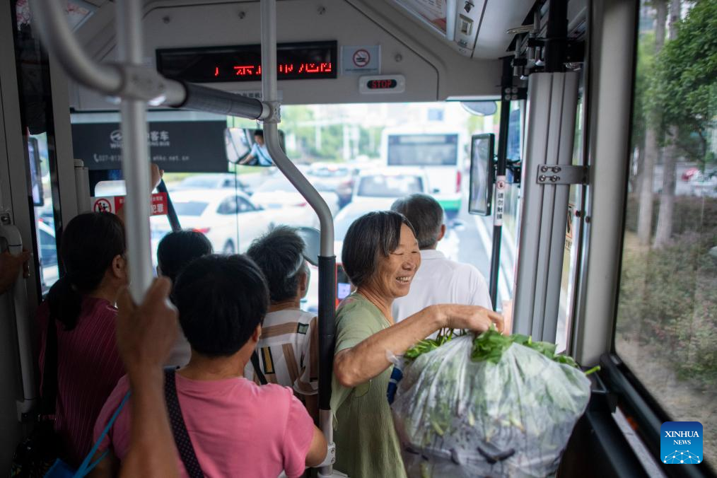 Farmers are pictured on a dedicated bus in Wuhan, central China's Hubei Province, Sept. 3, 2024. (Xinhua/Wu Zhizun)