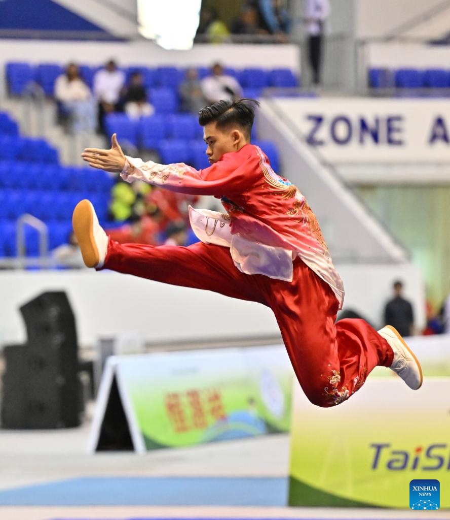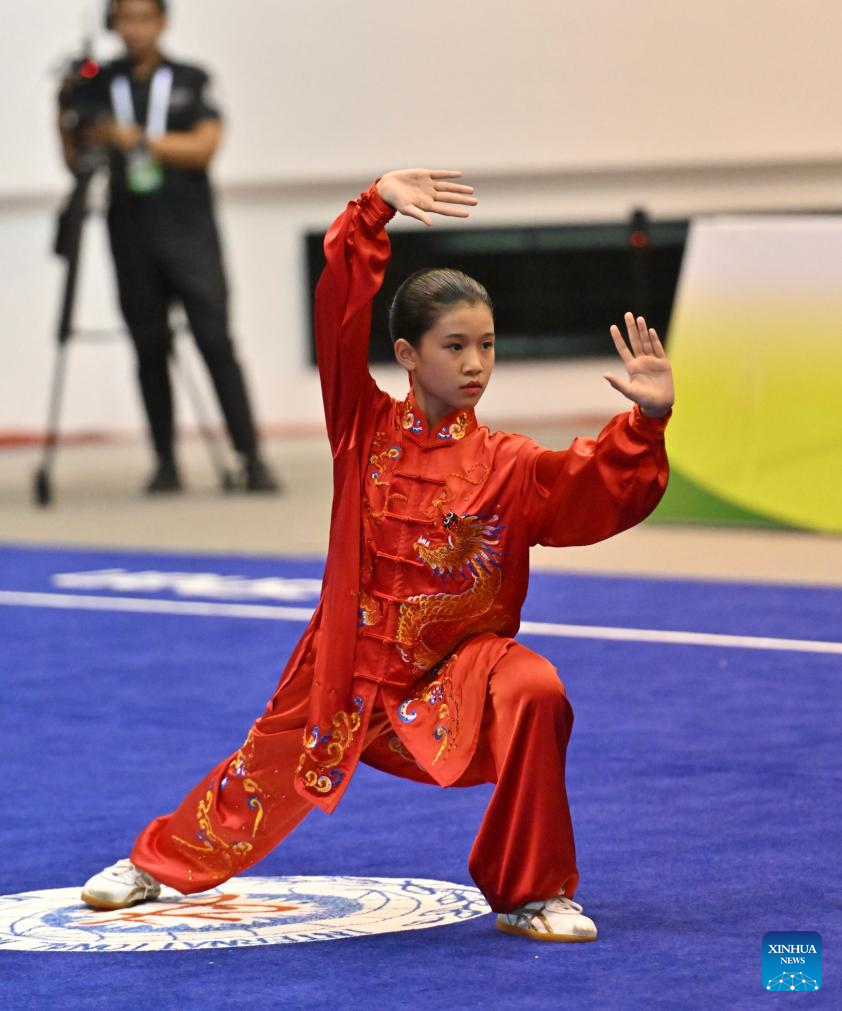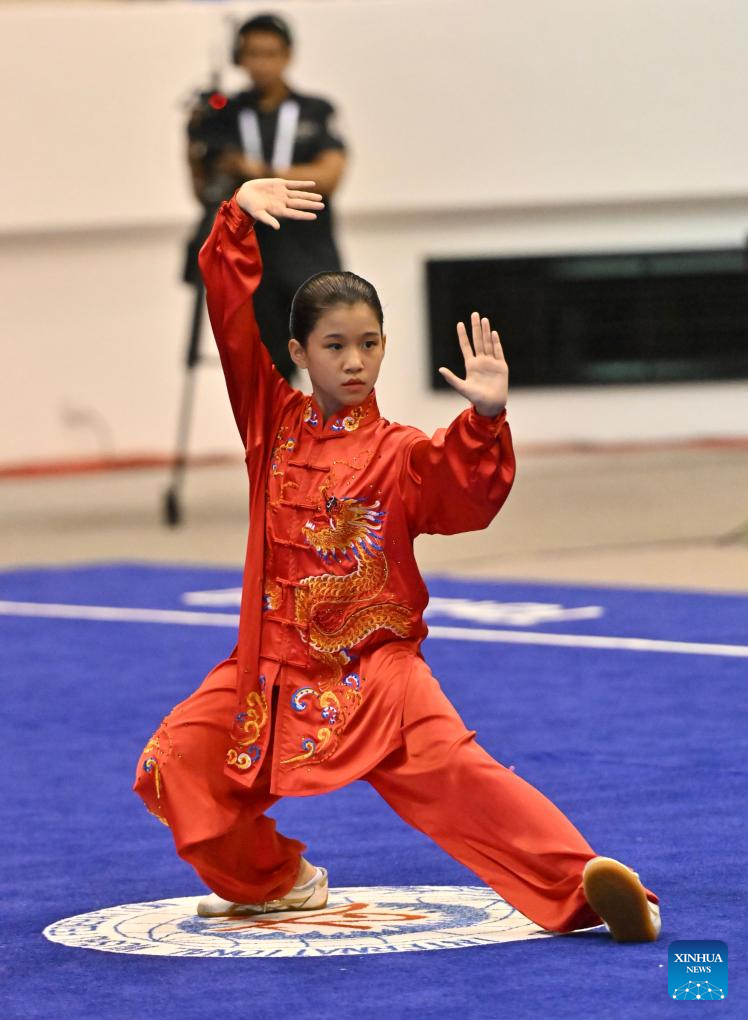 Chu Ching Hwa of Brunei competes during Group A competition of men's Taijiquan category of Taolu at the World Junior Wushu Championships in Bandar Seri Begawan, Brunei, Sept. 26, 2024. (Photo by Huang Zhiping/Xinhua)