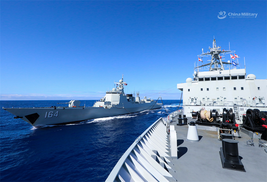 Comprehensive supply ship Luomahu conducts replenishment-at-sea (2)