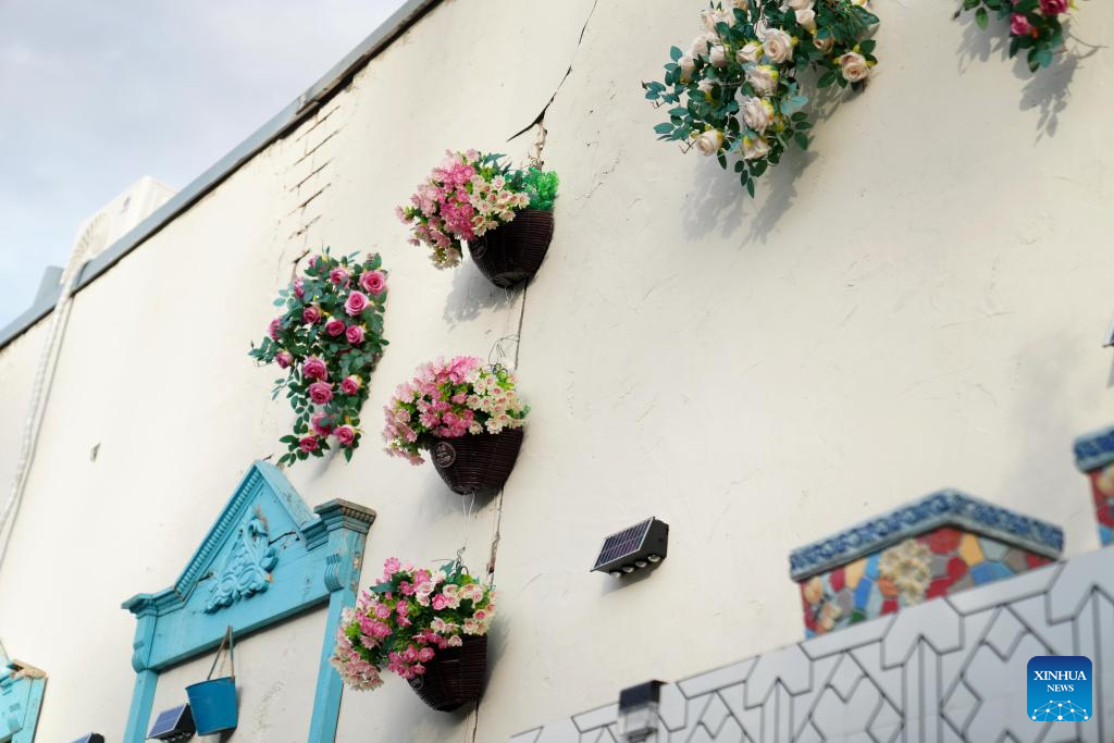 This photo taken on Sept. 27, 2024 shows decorations of a store on the Liuxing Street in Yining City, Ili Kazak Autonomous Prefecture, northwest China's Xinjiang Uygur Autonomous Region. (Xinhua/Zhang Chaofan)