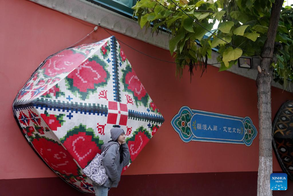A tourist walks on the Liuxing Street in Yining City, Ili Kazak Autonomous Prefecture, northwest China's Xinjiang Uygur Autonomous Region, Sept. 27, 2024. (Xinhua/Zhao Yusi)