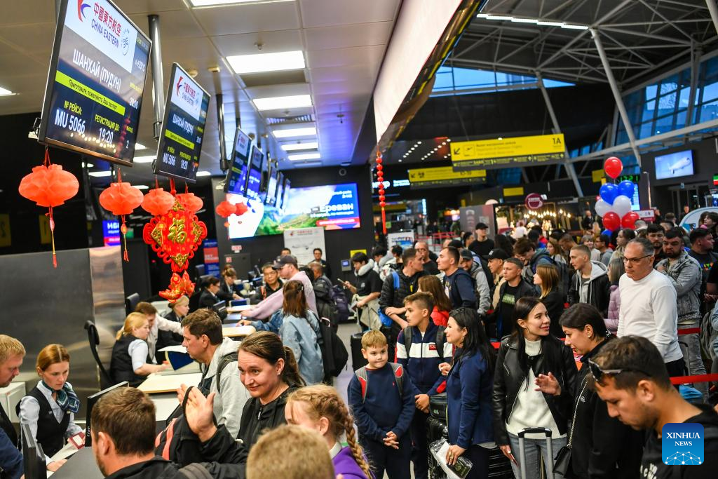 SHANGHAI, Sept. 28 (Xinhua) -- China's financial hub Shanghai launched its first direct air route to Kazan, Russia, expanding travel options for the upcoming National Day holiday.